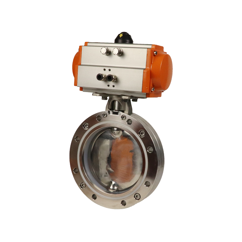 蝶閥配上氣動執(zhí)行器。氣動執(zhí)行器的執(zhí)行速度相對較快,并且不需要工人親力親為,在很大程度上節(jié)約了人力資源以及時間。蝶閥的蝶板安裝于管道的直徑方向。在蝶閥閥體圓柱形通道內,圓盤形蝶板繞著軸線旋轉,閥門初始位置根據(jù)實際需求而定,當閥門由初始位置旋轉90°后即為一個動作結束(由開到關,或由關到開),反之為另外一個動作(由關到開,或由開到關)結束。